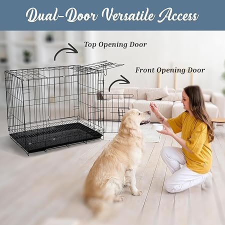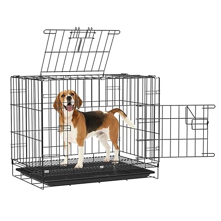 Pet Clean Foldable Dog Cage for Small to Medium Dogs, 30 Inches Strong Metal Heavy Duty Dog Crate with Removable Tray for 8-15 kg Dogs (Black)